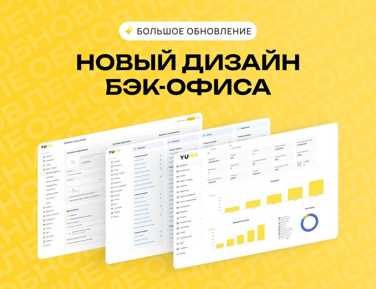 YUMA запустила масштабное обновление бэк-офиса. Мы старались сделать его использование более «чистым» и интуитивно понятным за счет переработки расположения элементов управления и визуала.